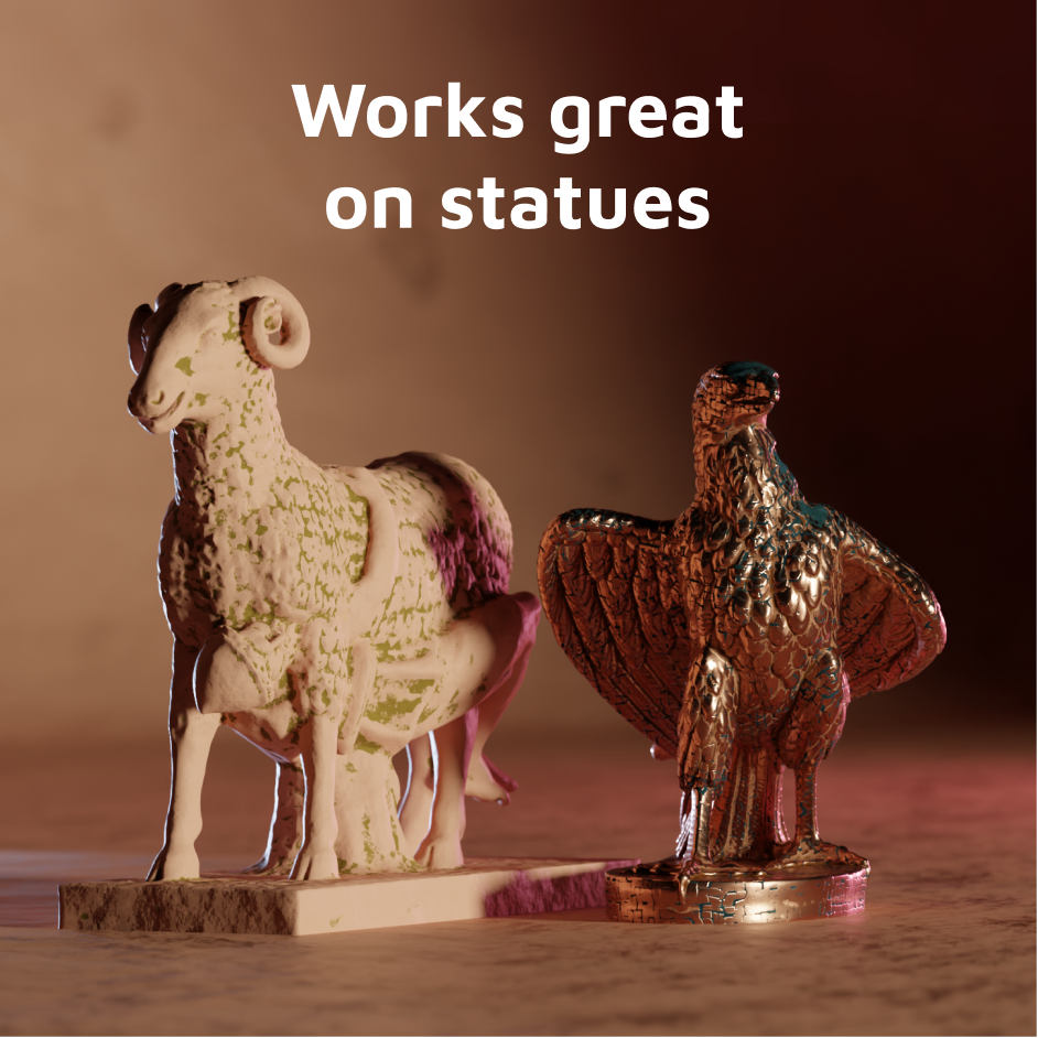 - 🗽Works especially great on statues (try for yourself on some free ones from https://threedscans.com/)